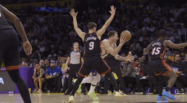 易边再战,热火终于找到解决防守端孱弱的办法,通过包夹东契奇和限制湖人的突破来加强湖人的三分投射数量。