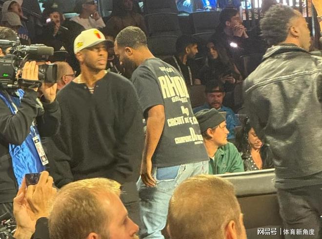 还有哦,刚刚被快船“无情抛弃”的保罗也现场看球啦……