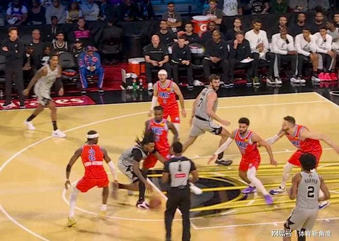 比赛开场的时候,马刺那紧张的状态简直肉眼可见啊,整个命中率低得让人直咋舌。开场好长一段时间,他们的替补席就像个“打铁铺”,全员化身“一中哥”,各种6投1中、4投1中的情况不断上演……